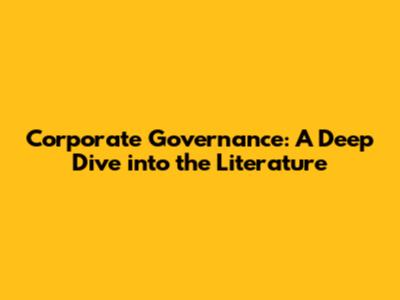 Corporate Governance: A Comprehensive Literature Review