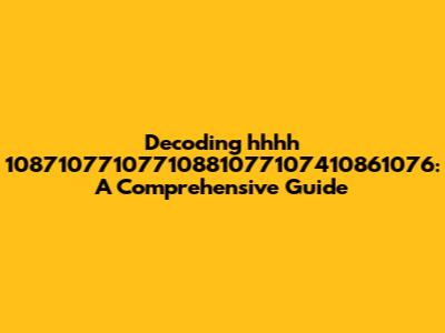 Okay, first things first, let's look at what we've got. The sequence starts with "hhhh," which could be an abbreviation, a placeholder, or just random characters. Following that, we have a string of numbers: "10871077107710881077107410861076." Numbers like these often represent codes, identifiers, or even data points. The key here is to understand the context in which you found this sequence. Was it in a computer log? A social media post? An old document? The context can give us vital clues.