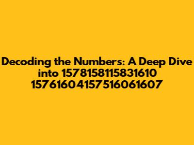 Hey guys, let's break down this intriguing sequence: 1578158115831610 15761604157516061607. This isn't just a random string of numbers; it's a puzzle, a code waiting to be cracked. In this article, we'll embark on a journey to decode it, exploring potential meanings, patterns, and contexts. Buckle up, because we're about to dive deep into the world of numbers and uncover their hidden secrets. The aim is to thoroughly analyze 1578158115831610 15761604157516061607, so that anyone reading this has a good understanding of what the numbers could represent.