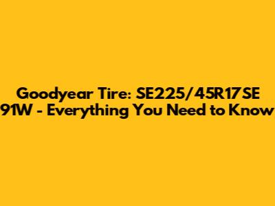 Goodyear Tire: SE225/45R17SE 91W - Everything You Need To Know