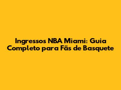 Ingressos NBA Miami: Guia Completo Para Fãs De Basquete