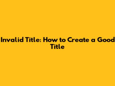 Invalid Title: How To Create A Good Title