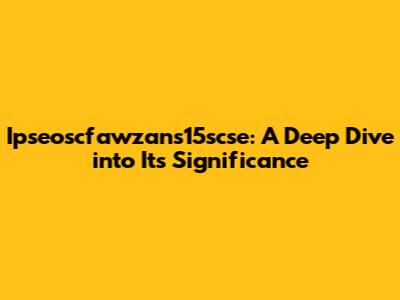 Ipseoscfawzans15scse: A Deep Dive Into Its Significance