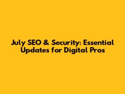 July SEO & Security: Essential Updates For Digital Pros