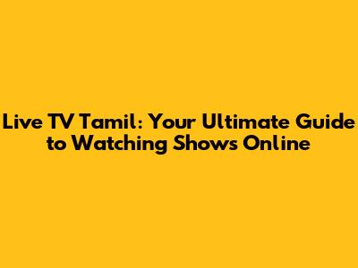 Live TV Tamil: Watch Your Favorite Shows Online