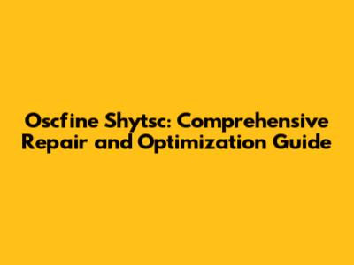 Oscfine Shytsc: Comprehensive Repair And Optimization
