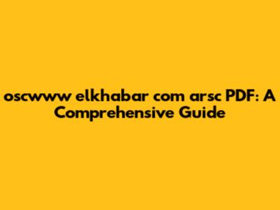 Oscwww Elkhabar Com Arsc PDF: A Comprehensive Guide