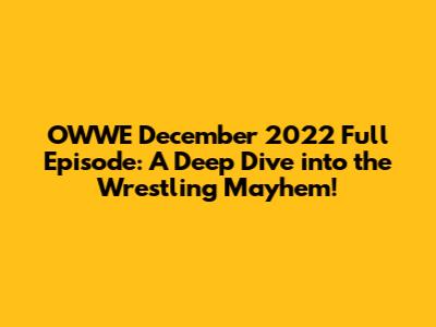 Hey wrestling fanatics! Buckle up, because we're diving headfirst into the OWWE December 2022 full episode! If you're anything like me, you live for the hard-hitting action, the dramatic storylines, and the sheer athleticism of professional wrestling. This episode was a banger, and we're going to break down all the key moments, matches, and unforgettable events that made it a must-see. Get ready to relive the glory, the rivalries, and everything in between! We will explore the matches and the highlights. Let's get started, guys!