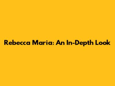 Rebecca Maria: Everything You Need To Know