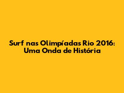 Surf Nas Olimpíadas Rio 2016: Uma Onda De História