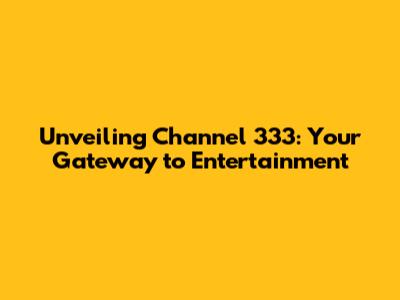 Unveiling Channel 333: Your Guide To Discovery