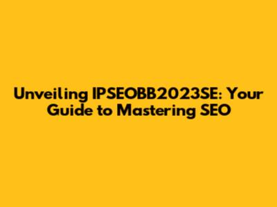 Unveiling IPSEOBB2023SE: Your Guide To Mastering SEO